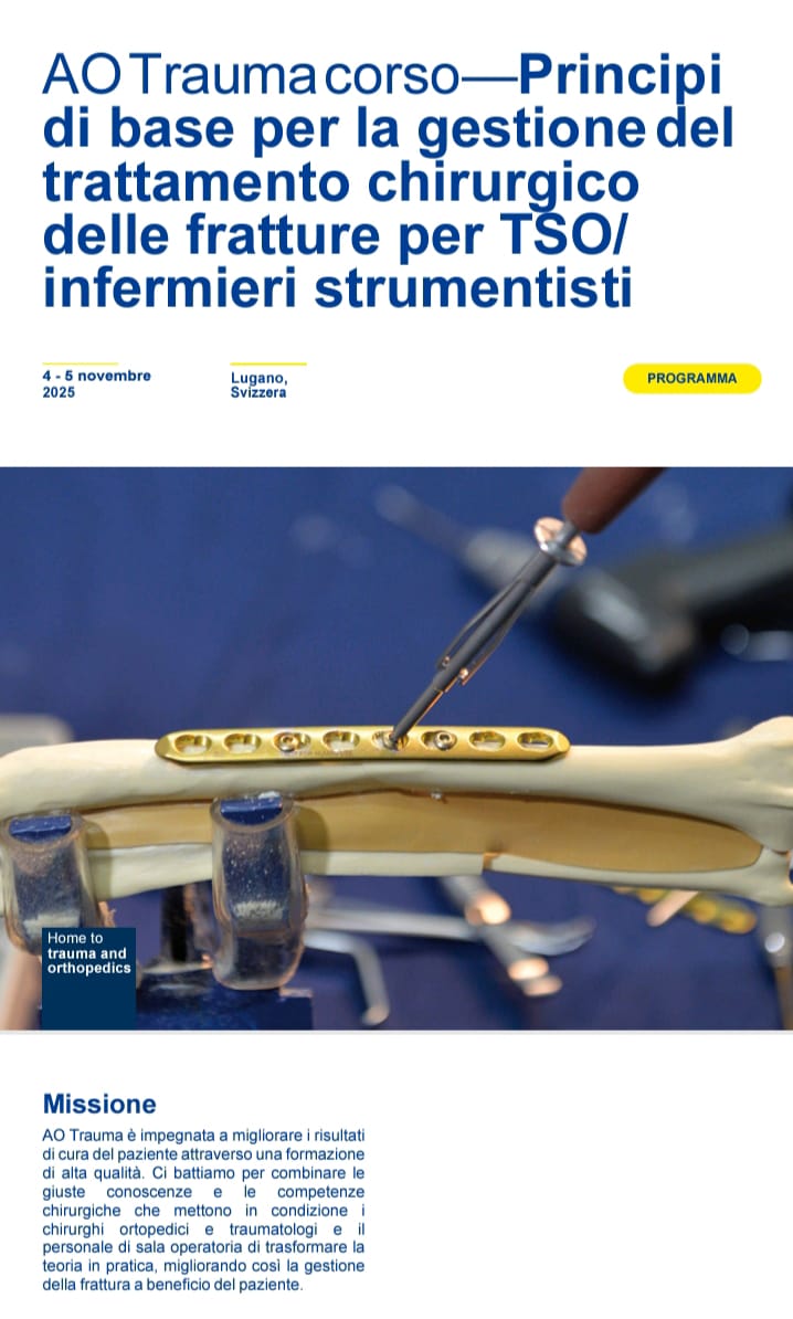 Presso L’Aula Magna del centro professionale sociosanitario medico-tecnico in via Rocchetto 14, 6900 Lugano Svizzera, il 4 e 5 Novembre 2025 si terra il corso sul trattamento chirurgico delle fratture.