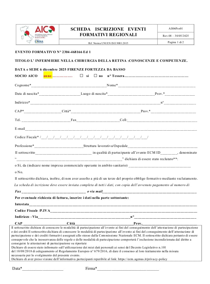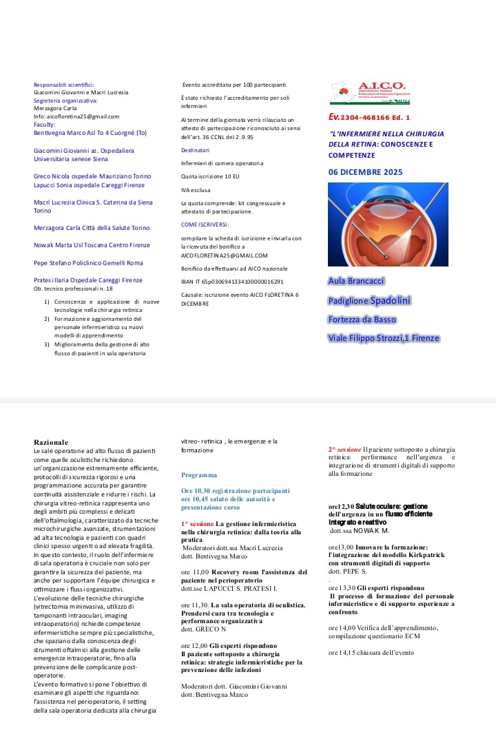 Il 6 Dicembre 2025 Presso FIRENZE Fortezza Da Basso, AICO affronta la chirurgia della retina esprimendo le conoscenze e le competenze degli infermieri in sala operatoria